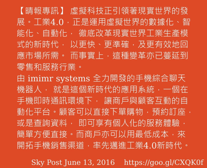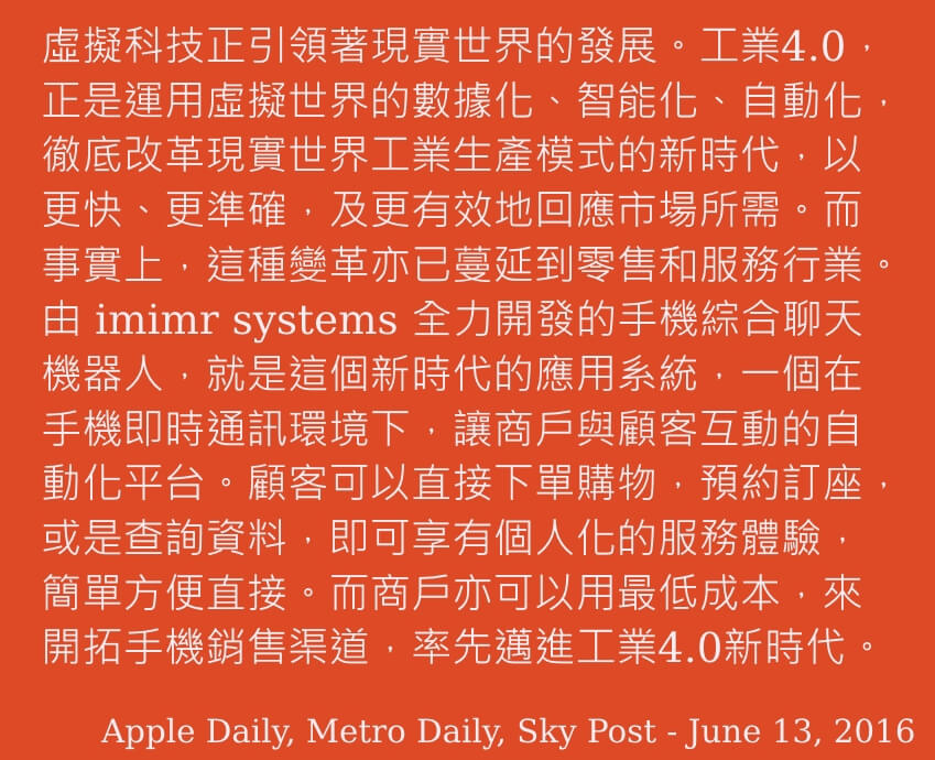BIZbyAI is the AI business solution arm of imimr systems. We power up your business with AI. We provide a wide spectrum of AI solutions to corporate customers -- Selling, Marketing, Customer Service, After Sales and Operations by AI solutions.